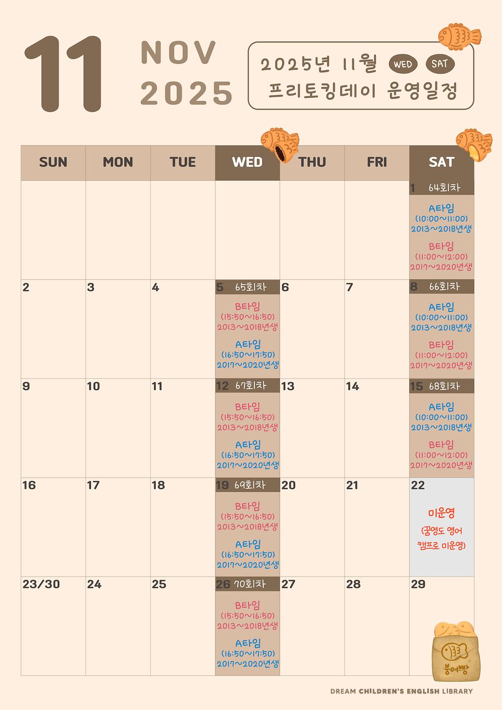 11월에도 '꿈영도 프리토킹 데이'는 계속됩니다~~