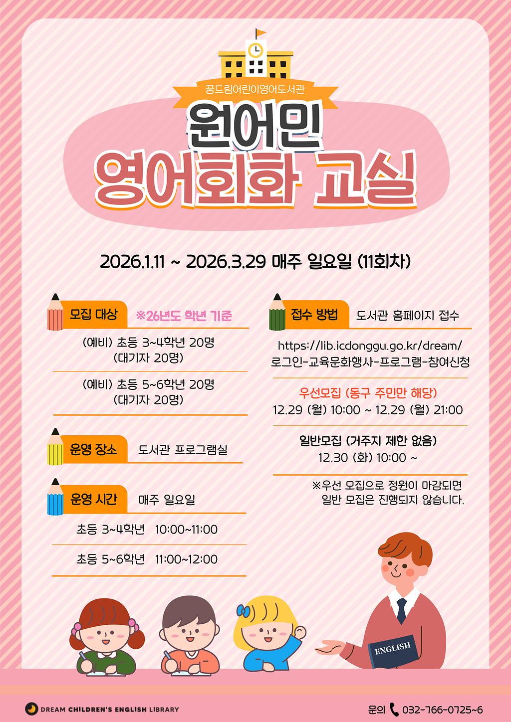 원어민 영어회화 교실(예비 초등3~4학년/예비 초등5~6학년)
