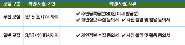 ※ 우선모집 접수자의 경우 3/15(일)까지 30일 이내 발급된 주민등록등본을 지참하시어