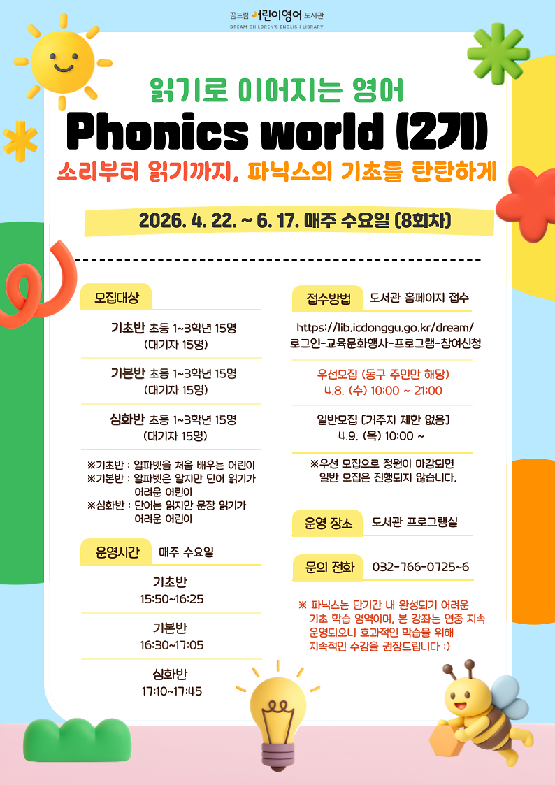 Phonics World 2기 수업은 기초/기본/심화반으로 운영됩니다.