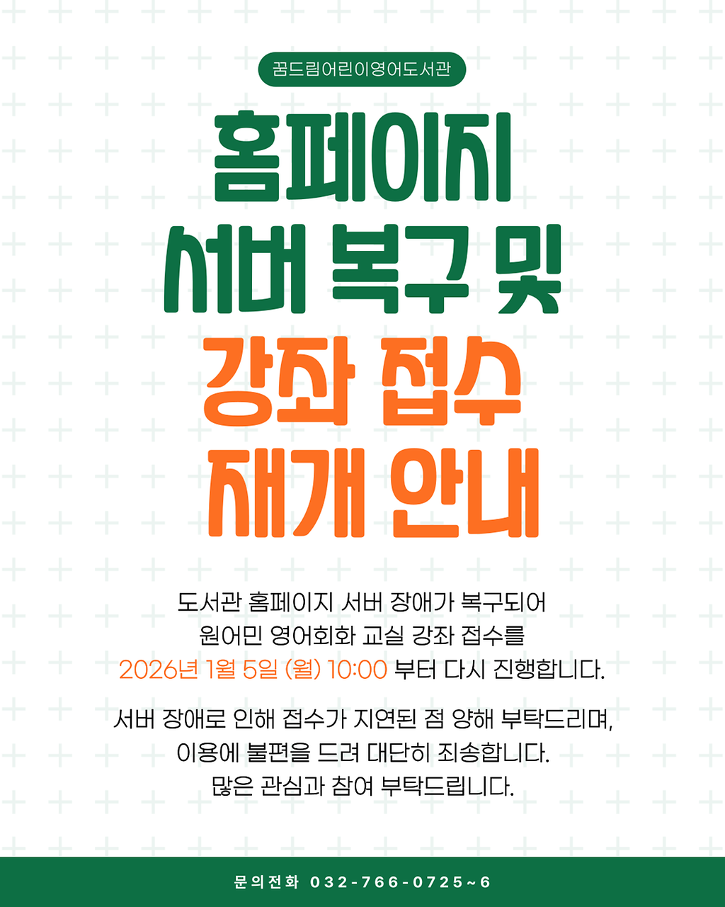 원어민 영어회화 교실 강좌 일반 접수 재개 안내