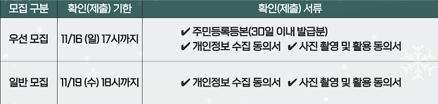 ※ 우선모집 접수자의 경우 11/16(토)까지 30일 이내 발급된 주민등록등본을 지참하시어