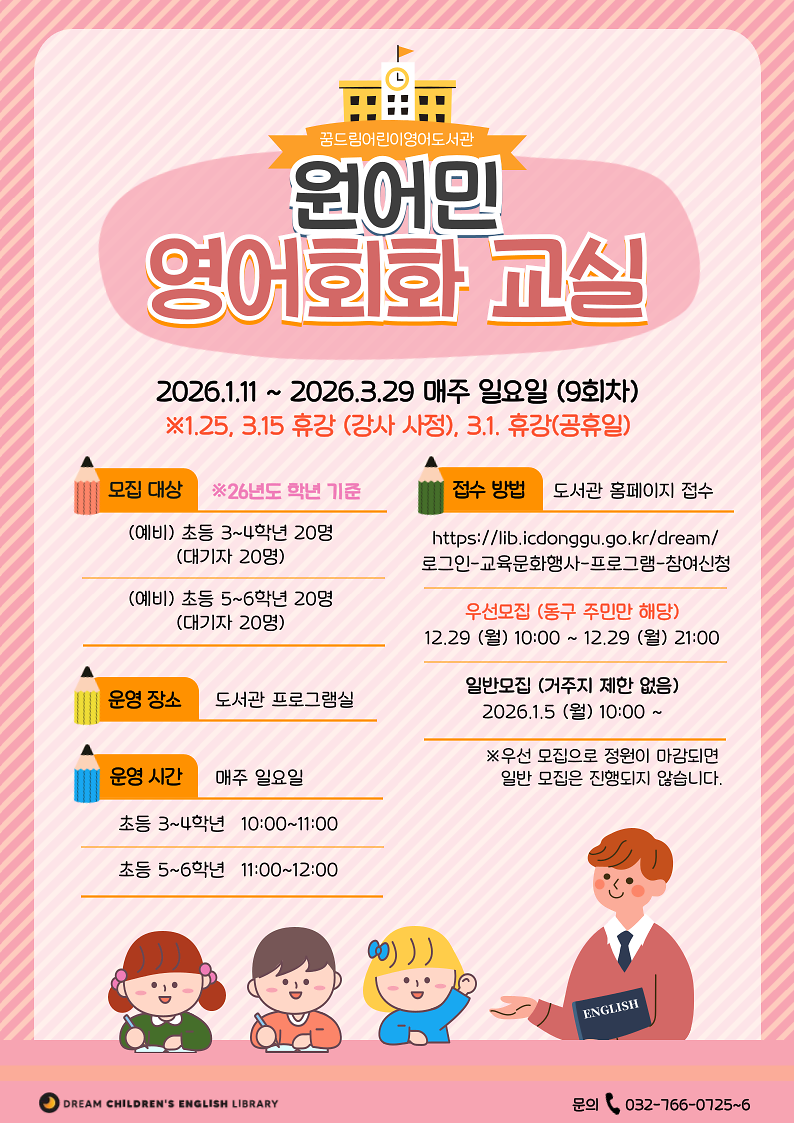 원어민 영어회화 교실(예비 초등3~4학년/예비 초등5~6학년)