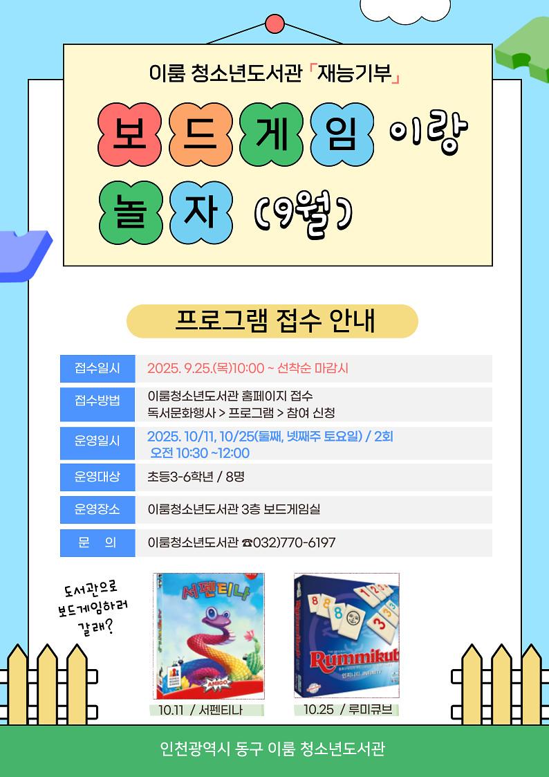 - 이룸청소년관 3층 보드게임실