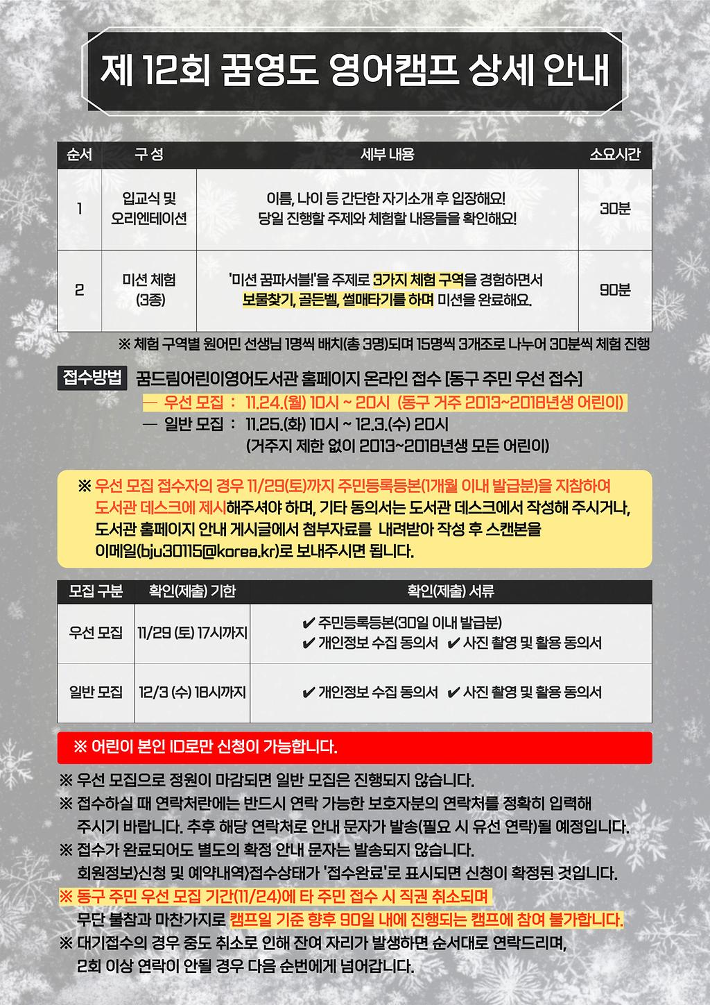 ✅우선모집 접수자의 경우 11/29(토)까지 30일 이내 발급된 주민등록등본을 지참하시어