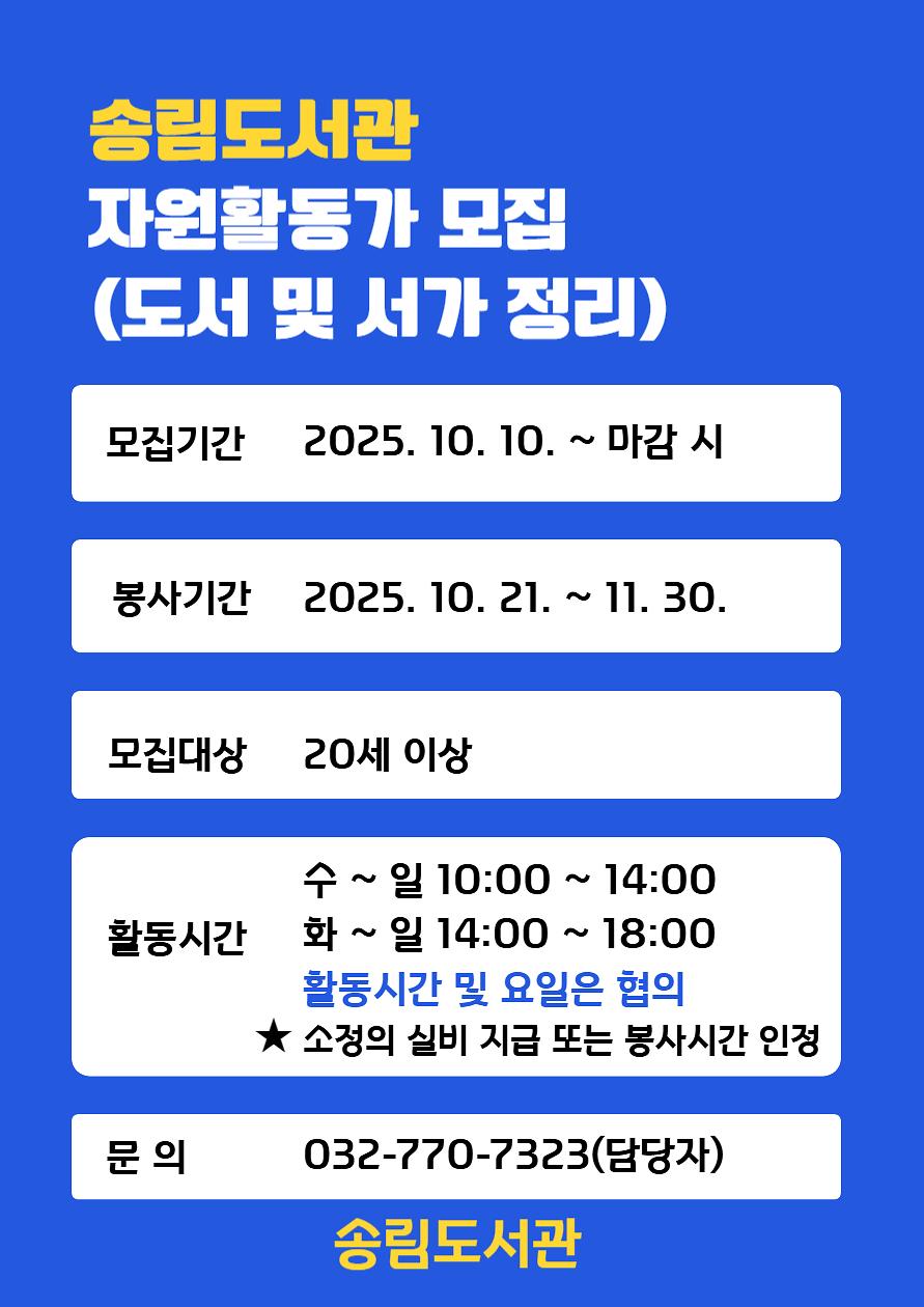 [마감]송림도서관 자원활동가 모집(도서 및 서가 정리)